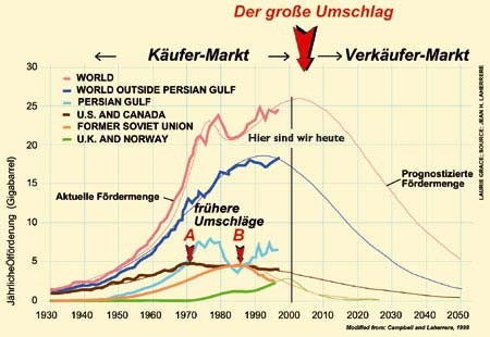 Dr. Josef Auer von der als eher konservativ bekannten Deutschen Bank Research stellt klar: "Wagt man einen längerfristigen Blick auf die Energieversorgung, liegt zumindest was das Erdöl betrifft die Zukunft schon hinter uns. Deshalb ist das Szenario vom Ende der fossilen Kohlenwasserstoffe kein Horrorgemälde pessimistischer Weltuntergangspropheten, sondern eine in den kommenden Jahren und Jahrzehnten ernst zu nehmende Verknappungsperspektive. Vorausschauende Politiker, Unternehmenslenker und Ökonomen sollten sich jetzt auf diese Zeit vorbereiten, um die Übergänge möglichst effektiv gestalten zu können."